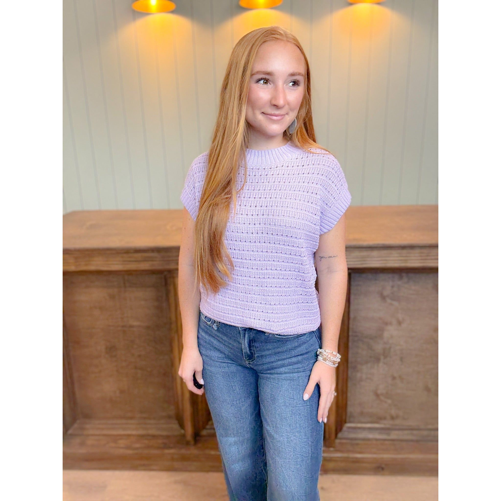 Soft, cozy, and just the right pop of color for fall — the Lilac Bloom Sweater brings a fresh twist to autumn layering. Featuring a textured knit in a rich lavender hue, this short-sleeve style is perfect for those in-between days when there’s a crispness in the air but you’re not ready for heavy layers. Pair it with denim and booties for an easy weekend look, or layer it over a long-sleeve tee as the season cools.