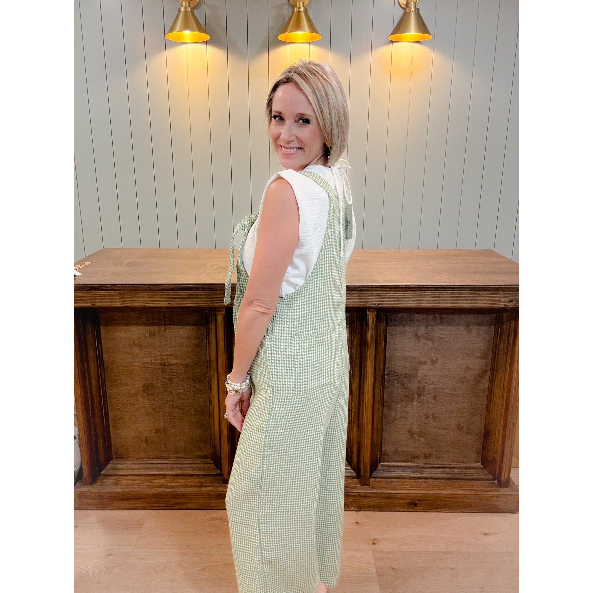 Meet your new everyday favorite 🌿 The Lennie Overalls are playful yet polished, designed in a lightweight gingham print that feels fresh and effortless. Featuring adjustable tie straps, roomy side pockets, and a relaxed wide-leg fit, these overalls are as comfortable as they are chic. Pair them with a ruffled blouse for brunch, a fitted tank for errands, or even layer with a cozy sweater as the seasons shift. Easy, breezy, and endlessly versatile—the Lennie Overalls are made for busy days that still deserve a little style.