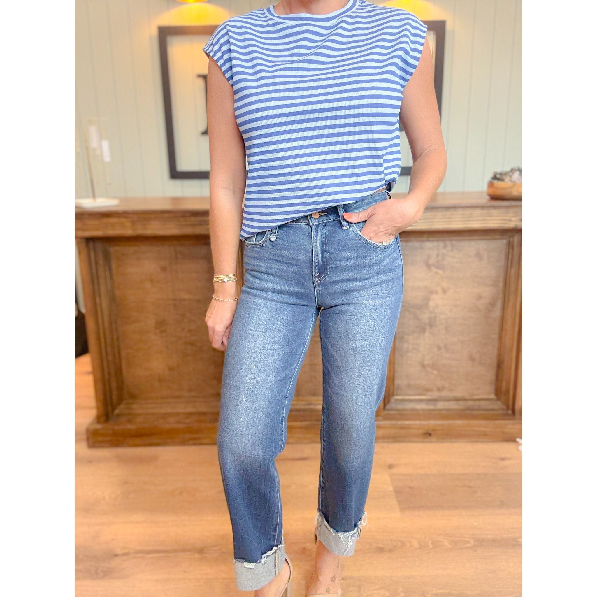 Laid-back meets timeless style in the Risen Medium Boyfriend Cuffed Jeans. Designed with a relaxed fit and classic medium wash, these jeans are perfect for everyday wear. The cuffed hem adds a casual-chic touch, making them easy to pair with sneakers, sandals, or even a heeled bootie. With just the right amount of stretch, they offer all-day comfort while keeping their shape. Effortless, versatile, and oh-so flattering—these are the jeans you’ll reach for again and again.