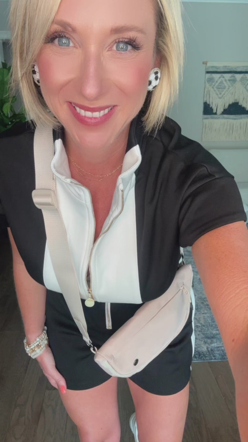 Equal parts casual and cool, the Hollis Romper is your go-to for elevated off-duty style. Featuring bold colorblocking, a functional gold half-zip front, and a flattering elastic waistband, this piece blends sporty vibes with pulled-together polish. Whether you’re running errands or heading to brunch, Hollis keeps things easy, comfy, and effortlessly on-trend.