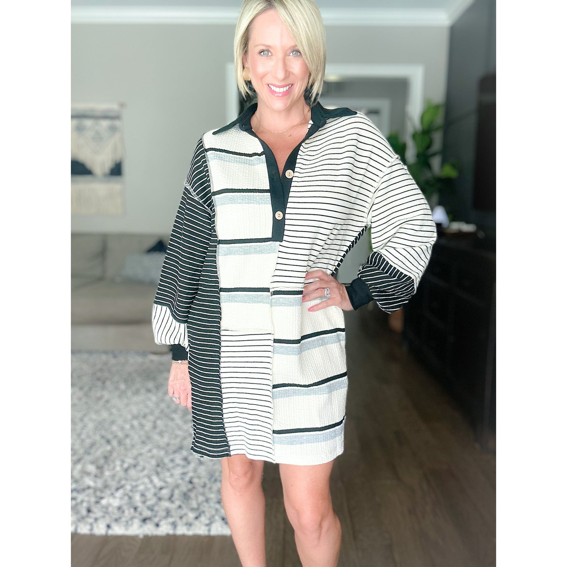 Introduce some variety into your wardrobe with our Jameson Colorblock Dress. This unique piece is perfect for any occasion and even comes equipped with pockets for convenience. Make a statement while staying practical with this one-of-a-kind dress.