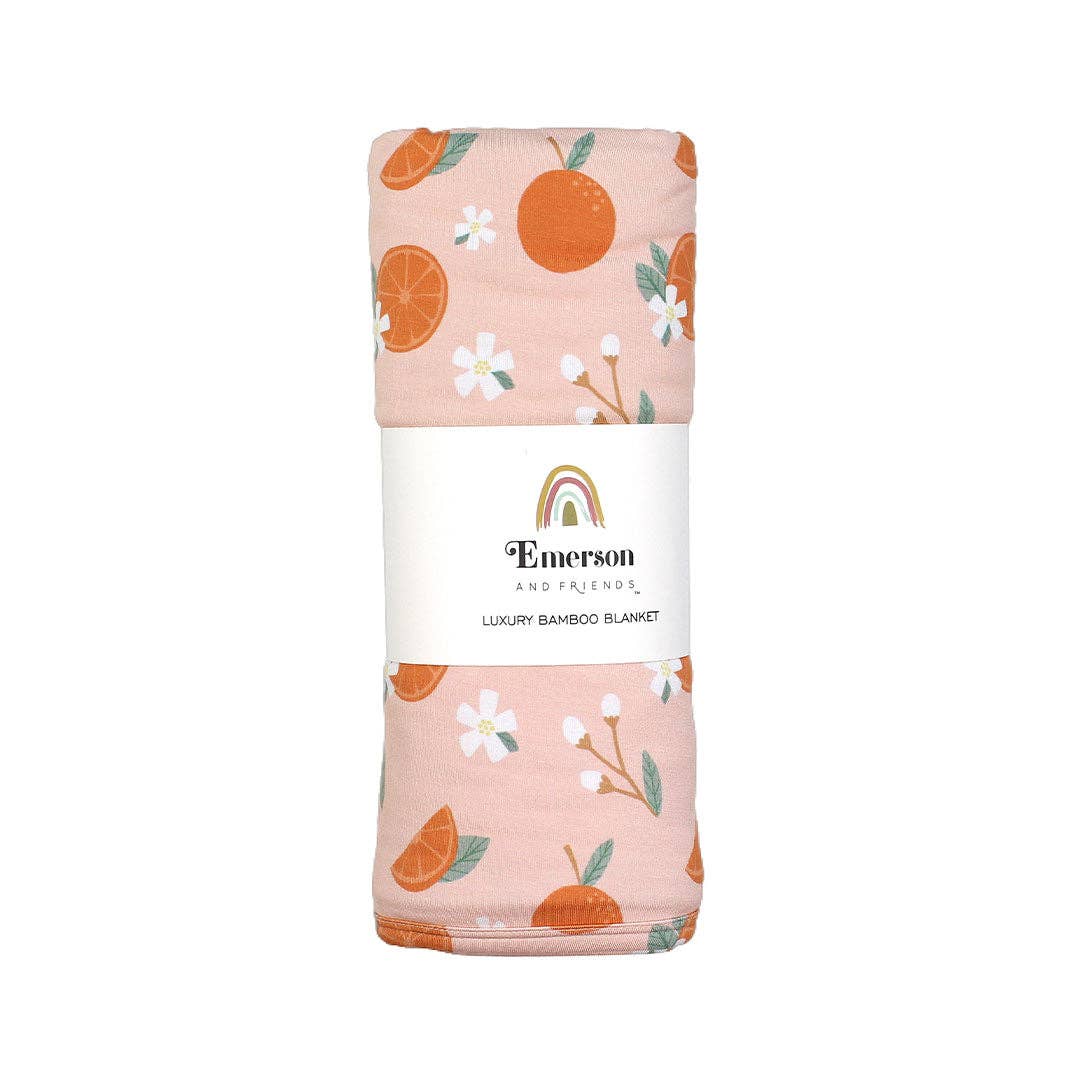 Snuggle up with the softest bamboo blanket in the cutest Freshly Squeezed Florida oranges pattern! Little ones will love this fun print, perfect for summer snoozes. Made from a high quality bamboo/spandex blend that is light and breathable providing comfort for all its uses. Made with two layers, this blanket has a slight stretch making it useful for swaddling, a receiving blanket, nursing cover, stroller cover, tummy time and more! Blanket is machine washable for easy cleanup!