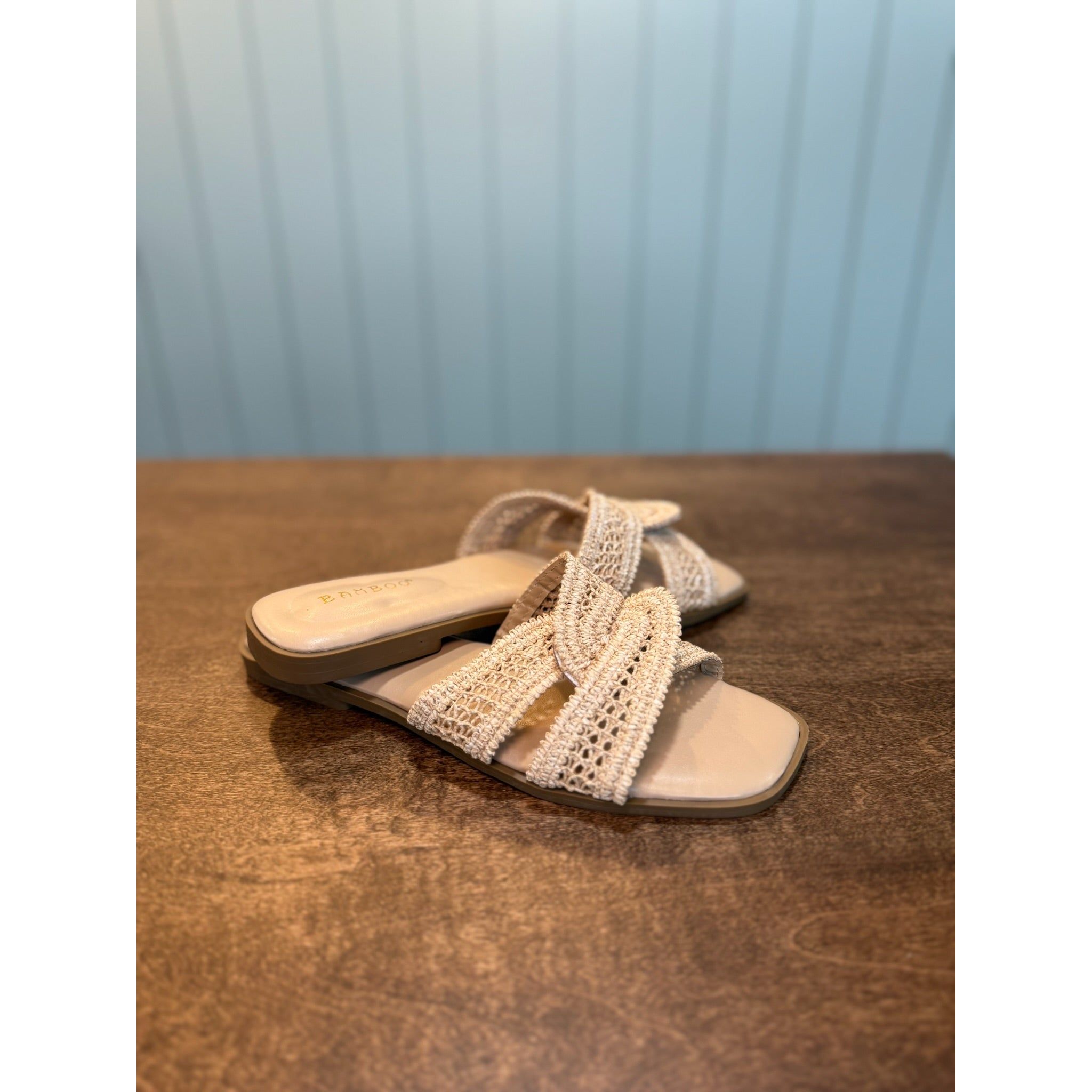 Simply charming and effortlessly elegant, our Coastal Twist Sandal features delicate woven straps and a comfy flat sole — the perfect touch of southern grace for all your sunny days. Whether you're strolling through town or relaxing at a weekend getaway, this sandal adds a sweet, laid-back vibe to any outfit.