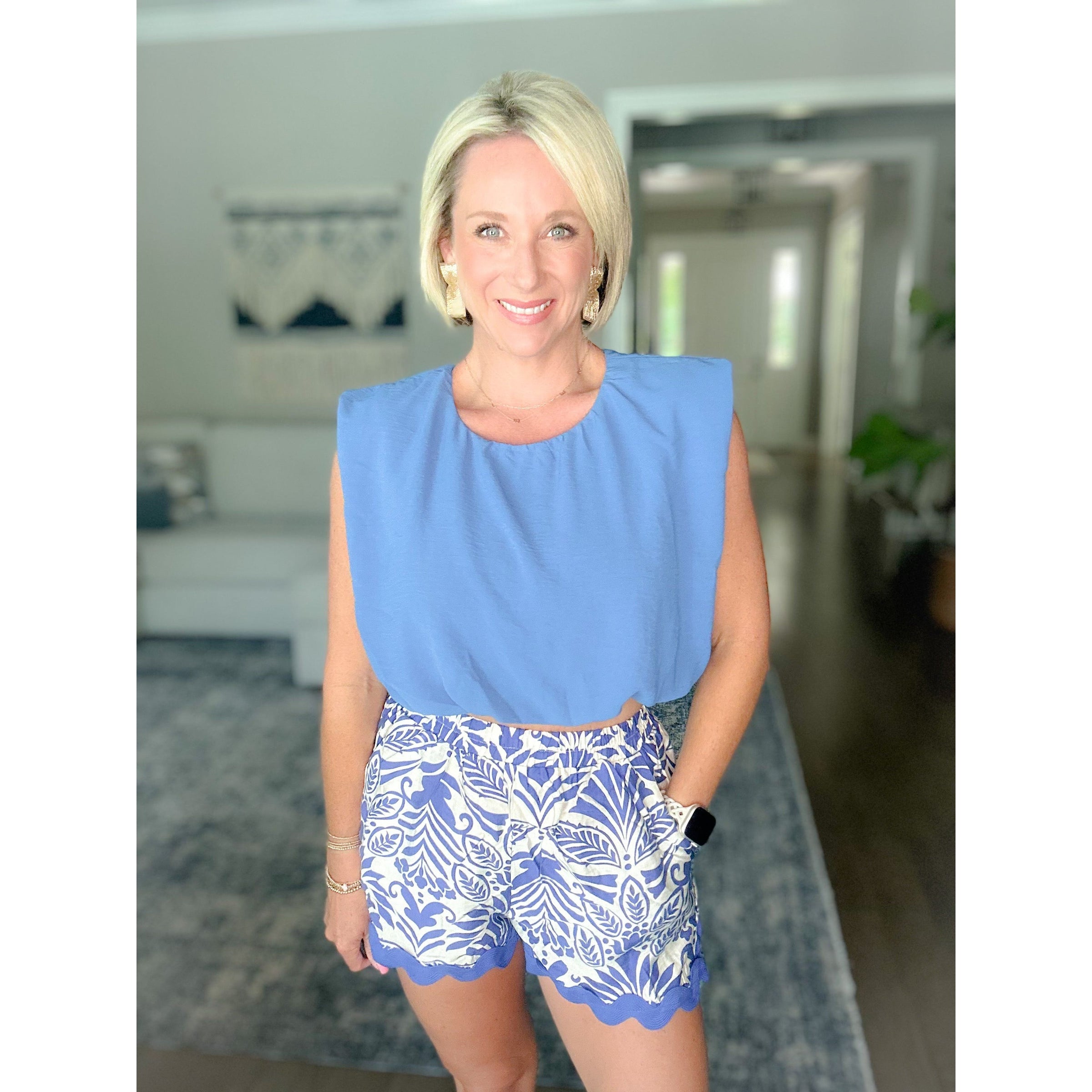 Soft volume, subtle drama 💙 The Balloon Crop is your new warm-weather staple—featuring a gathered neckline, airy silhouette, and a modern cropped length that pairs effortlessly with high-rise everything. The sweet tie-back closure and keyhole detail at the neck add the perfect feminine finish. Lightweight and breezy with a luxe crepe texture, it’s available in three dreamy shades: Dusty Blue, Cream and Rust. Shown paired with our Indigo Isle Shorts and Risen Cream Crop Barrel Pants.Â
