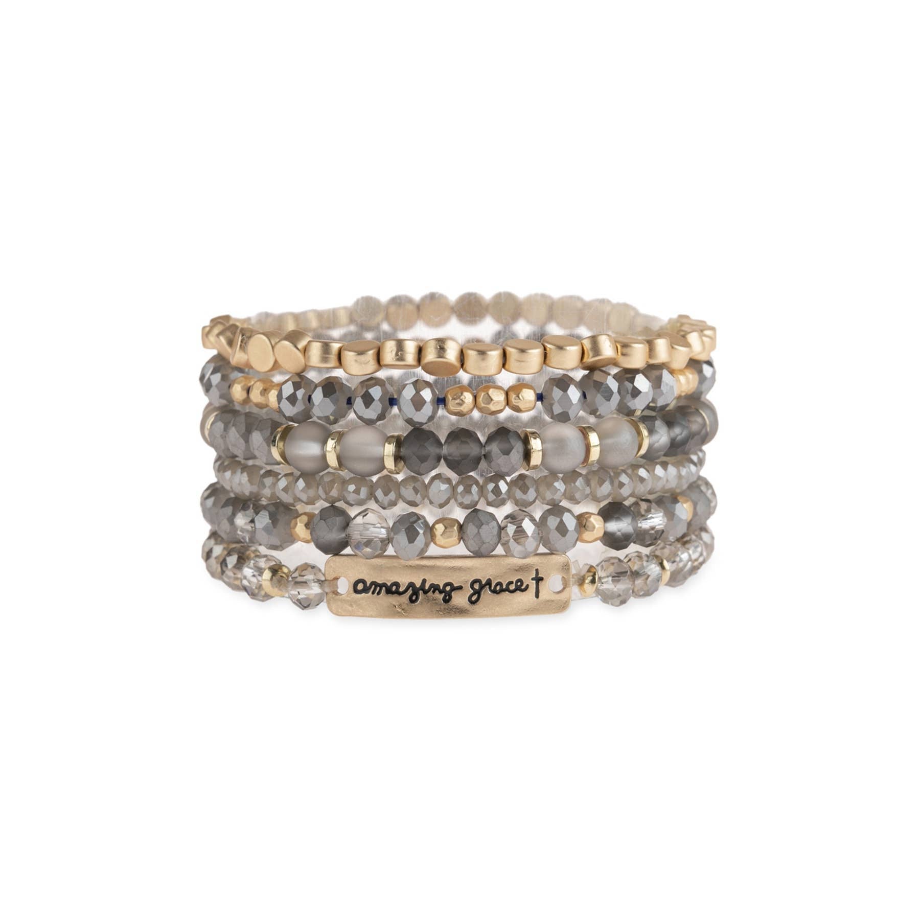 Amazing Grace Charm Mixed Beads Bracelet Set