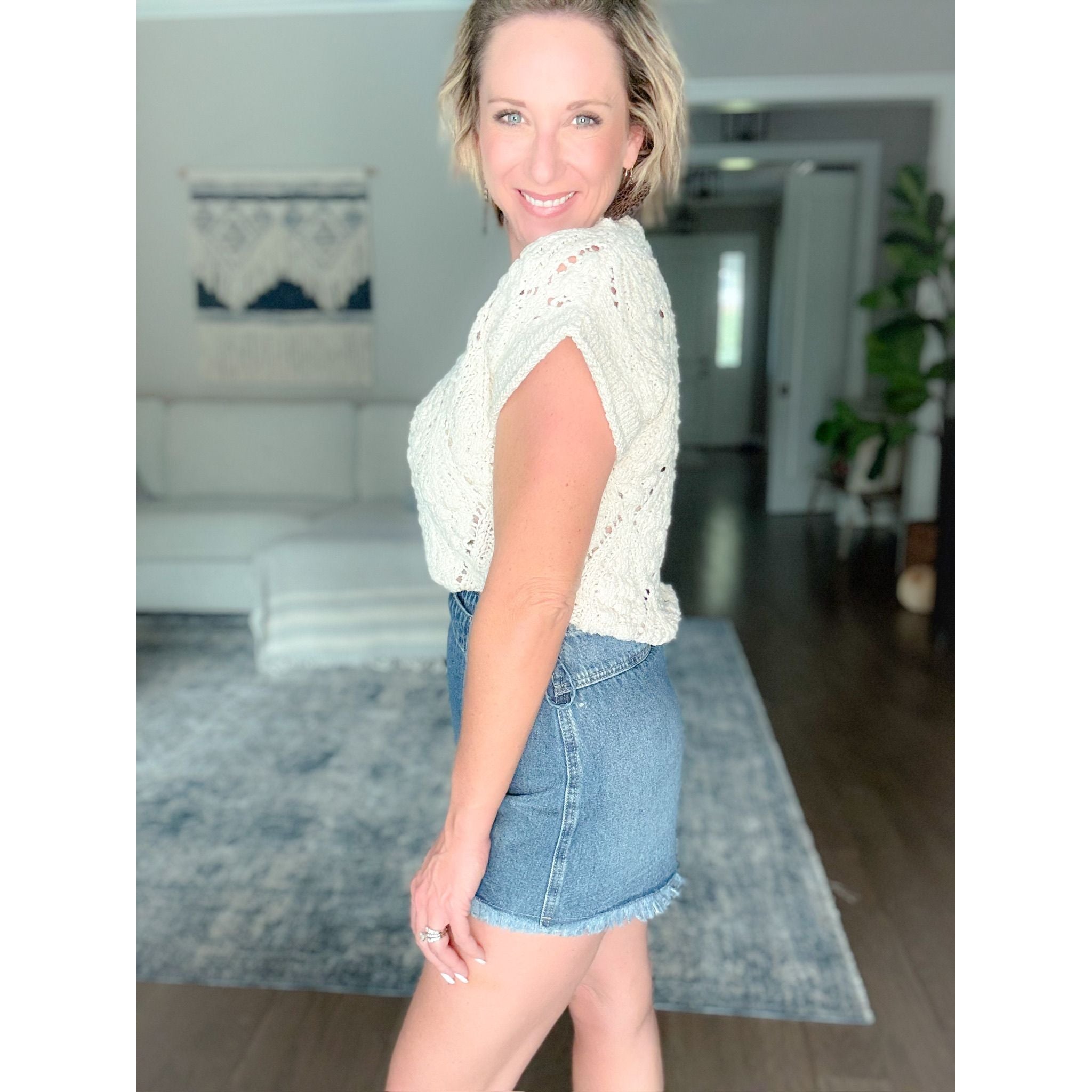 - Cropped, knitted, breathable