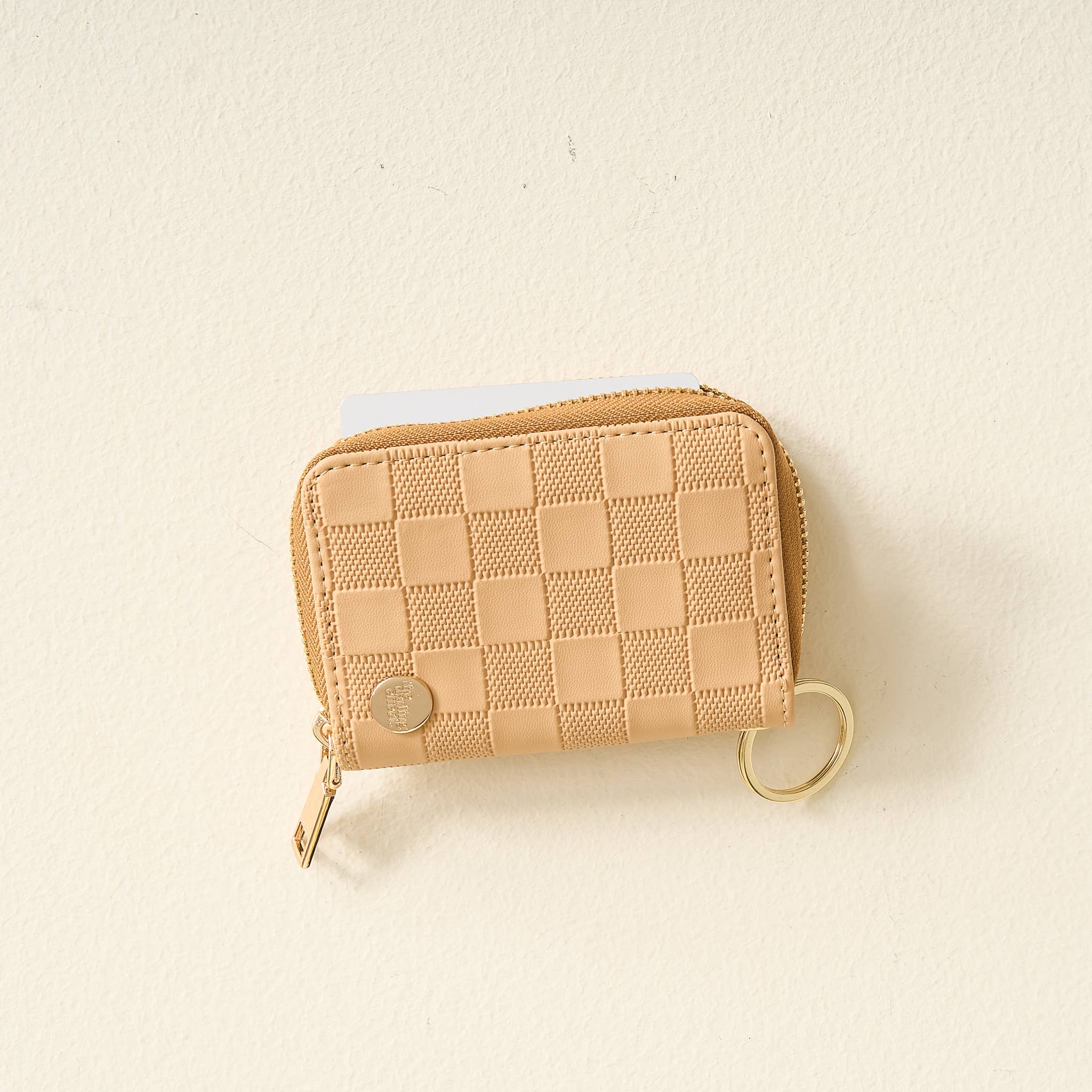 Elevate your everyday with the Harper Check Wallet—where timeless style meets everyday function. Designed with a chic checkered texture and polished gold accents, this compact wallet features a secure zip closure and keyring attachment for effortless convenience. Inside, you’ll find space for cards, cash, and small essentials, making it the perfect grab-and-go piece for errands, nights out, or slipping into your favorite tote. Sleek, versatile, and oh-so-classy, Harper is the wallet you’ll reach for again and again. Dimensions: 5.5” x 3” x 1”
